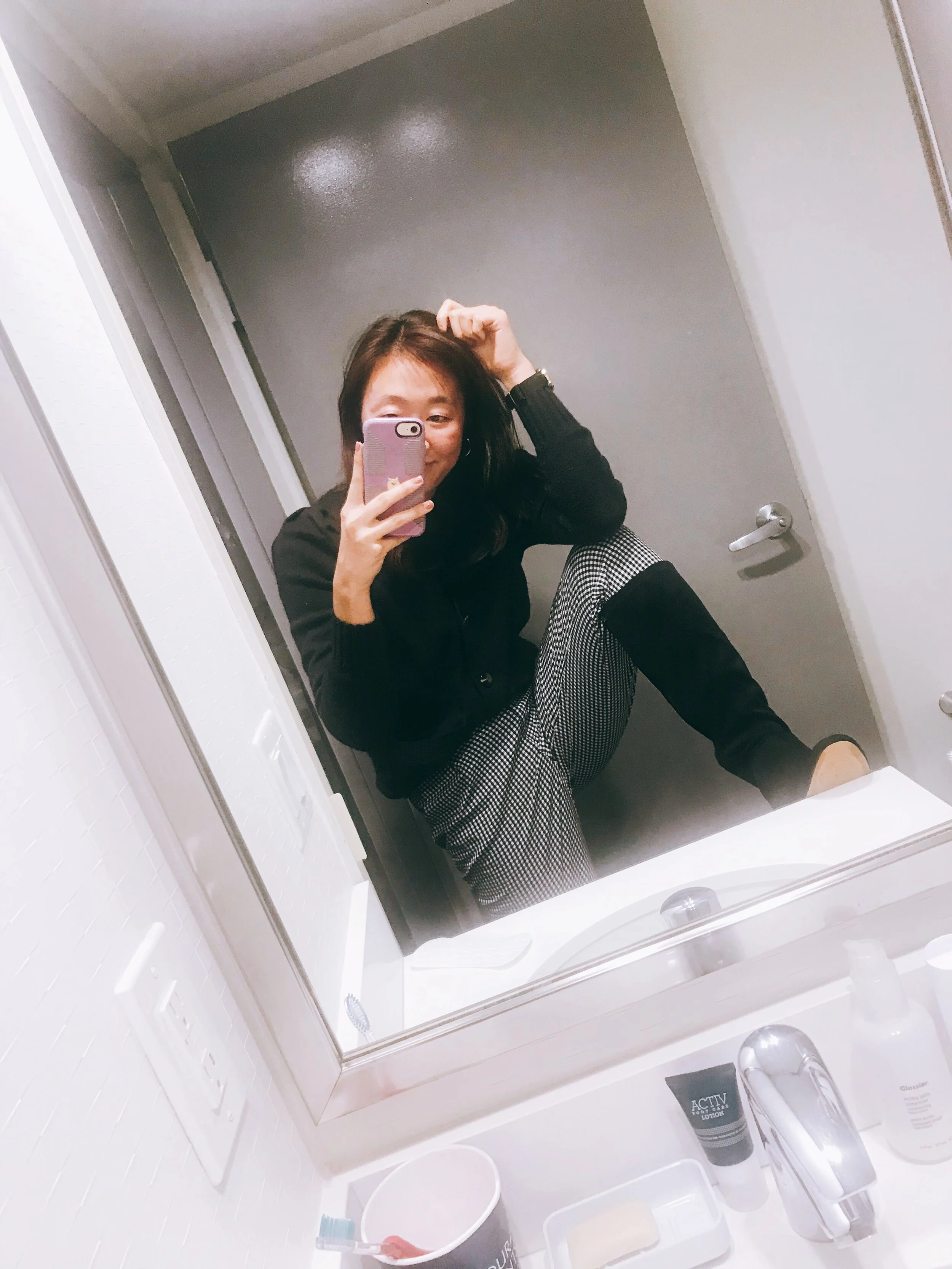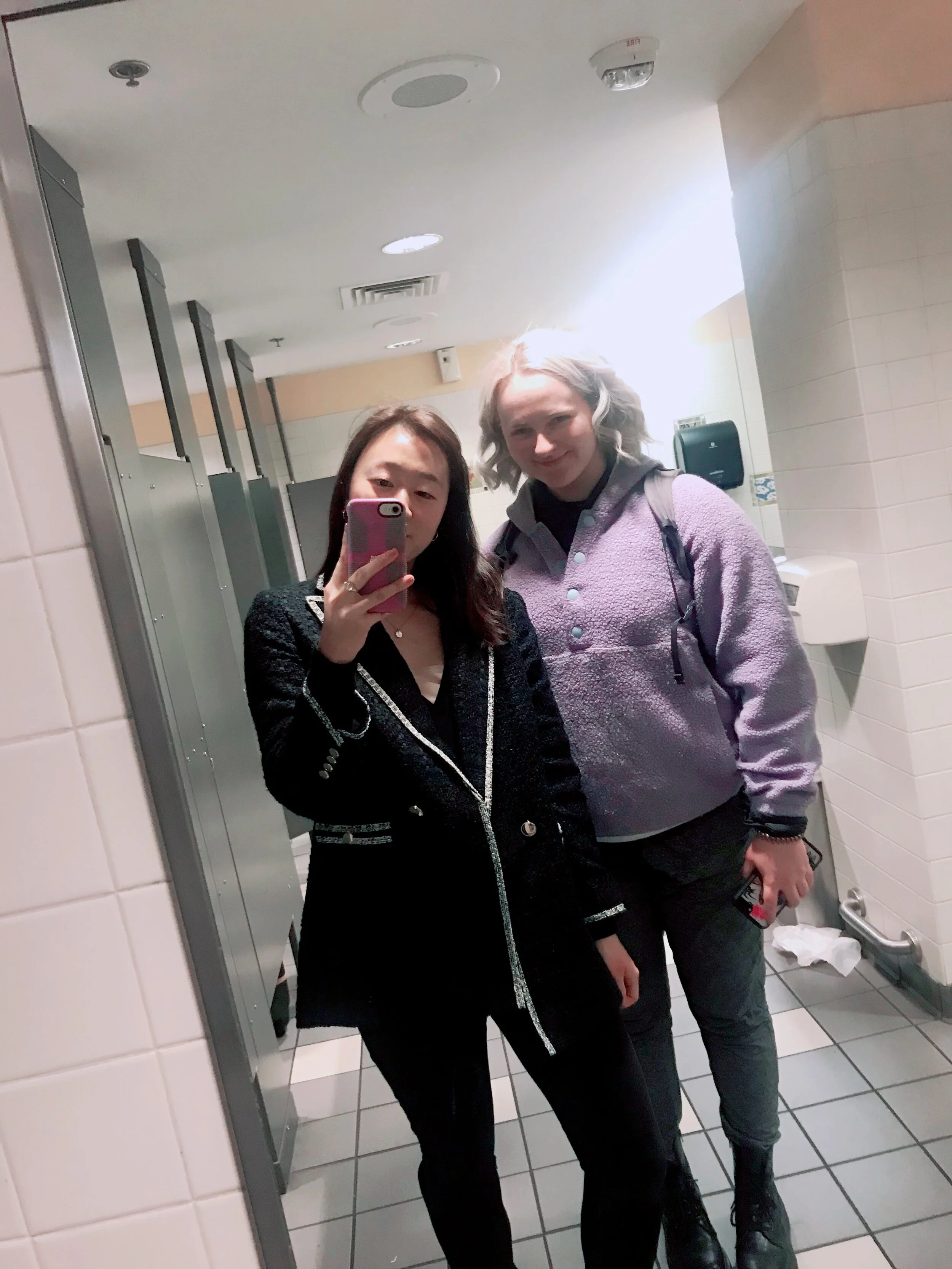 Kelsey and I in the airport!! bathroom!! no shame EVER in taking bathroom selfies at the airport!! and thus begins the all-black ensembles!