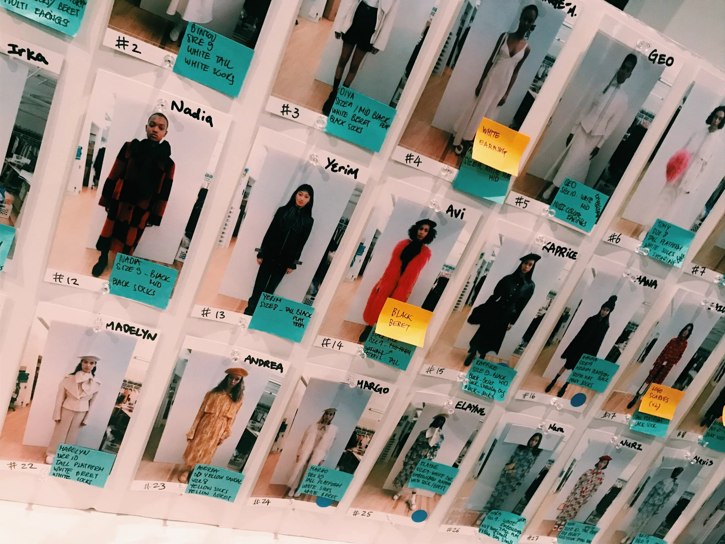 the model lineup!! I always try to snap a pic of these at shows cuz it’s raw evidence of the work that goes into producing fashion shows.