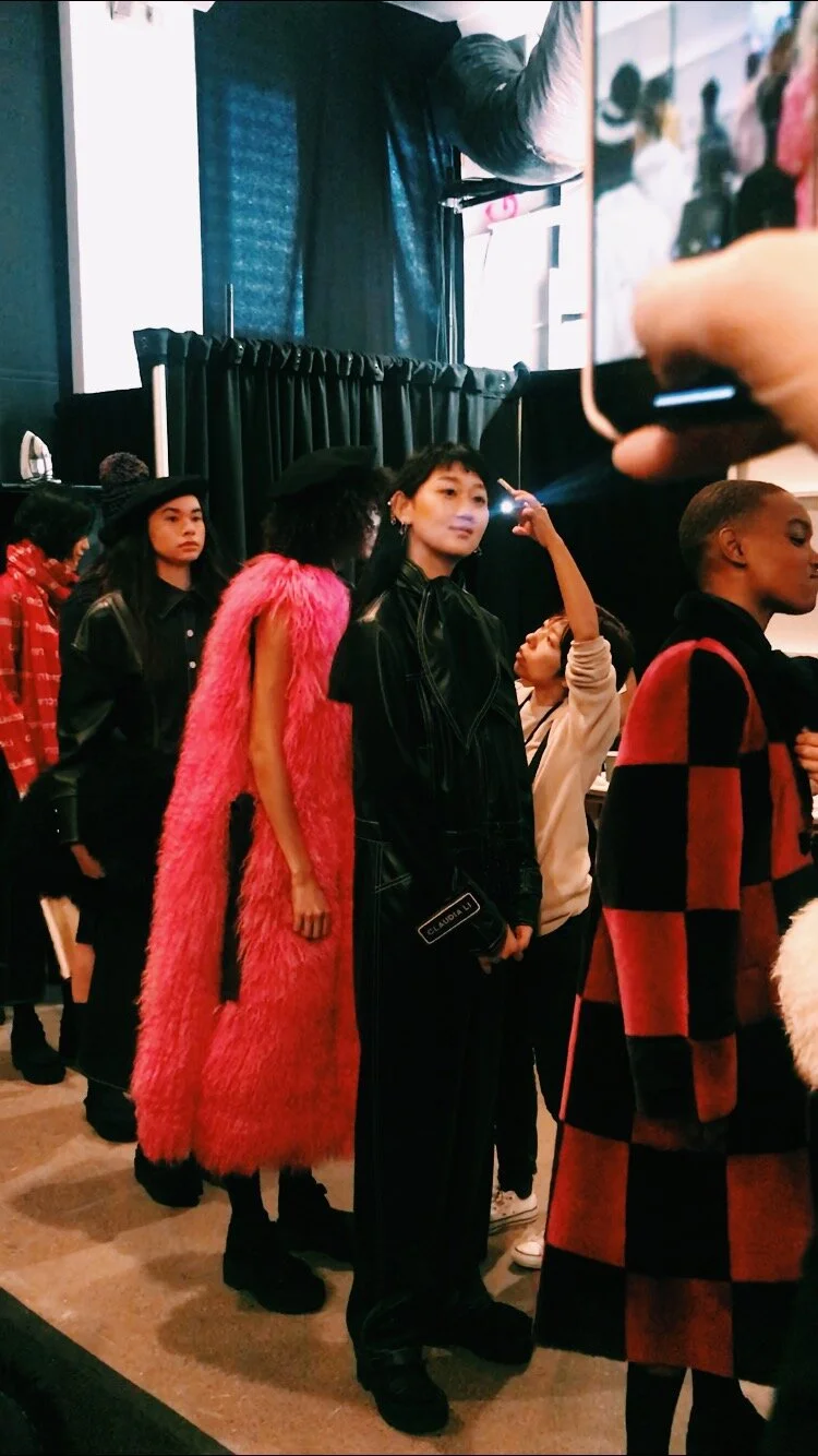 Today I had two shows!! The first was Claudia Li and it was at Spring Studios!! Spring Studios is always cool to be at cuz that’s where all the paps wait with their cameras for models, designers, and celebrities. So I always feel low-key v important when I go there. Not to mention it’s NYFW HQ!! For Claudia, we were responsible for dressing the models. Imma be honest, it’s not my favorite thing to do, but it’s still cool getting to see and touch all the garments up-close as well as interact with the models!! It was kinda sad though, because that’s where I also saw more of the harsh realities of being a model during fashion week. My model, Tomy, was sick with a sinus infection, but she told me she still had to attend all her fittings and walk all the shows, even though she was miserable, and it made me really sad. Fashion is not always glamorous, folks.