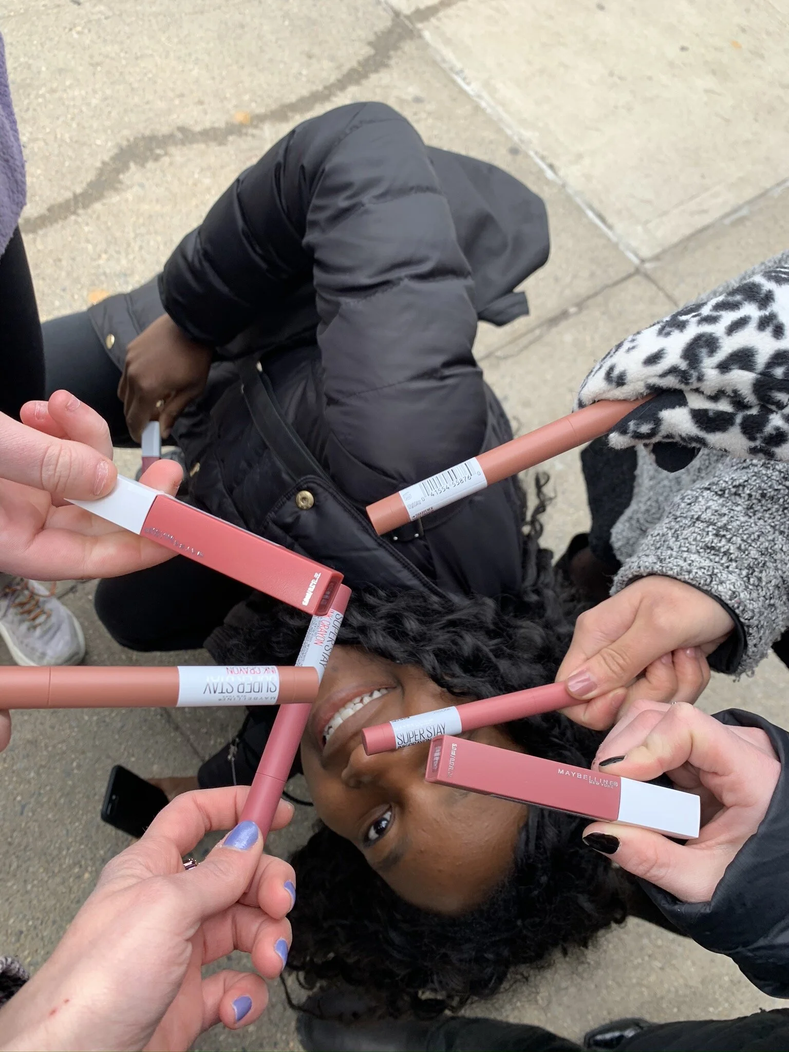 after each show in Spring Studios, guests are led to a room filled with brands offering free stuff! Maybelline was giving out free hot cocoa and lipsticks!